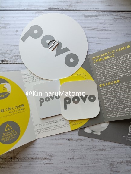 SIMを取り出すためのピンと説明書、povoのステッカー、そしてSIMが入っています。