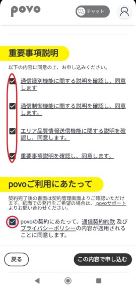 ★重要事項説明を読んで確認したらレ点をつけて『この内容で申し込む』をクリック