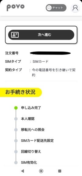 本人確認が完了するとpovoからメールが届きます。そしてSIMの送り先に設定した住所にSIMが到着するまで休憩です!